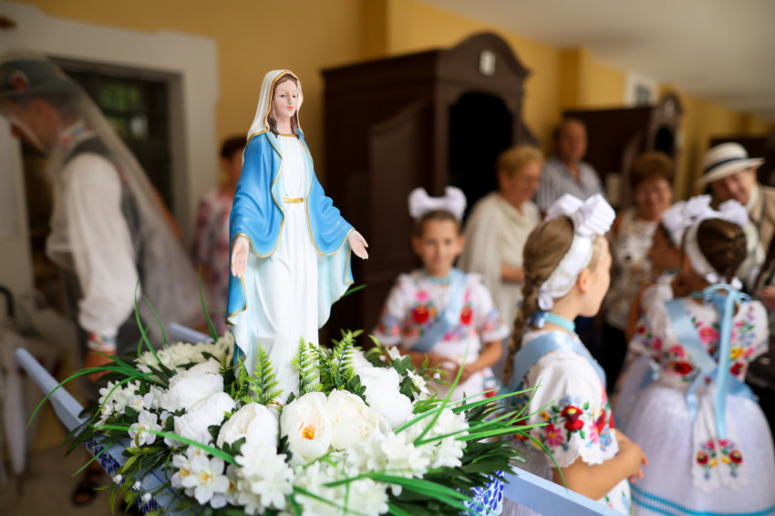 Ez a cél pedig nem önáltatás, hanem a mindenható Isten nagyszerű terve, aki boldogságra hívott mindannyiunkat. Arra szánt, hogy egész lényünkkel átélhessük a vele való közösséget, vagyis eljuthassunk abba az országba, ahová a Boldogságos Szűz Mária már testestől-lelkestől felvétetett. Ezért nagyhatalmú közbenjárónk ő, ahogyan a litániában imádkozzuk: nagyhatalmú Szent Szűz.