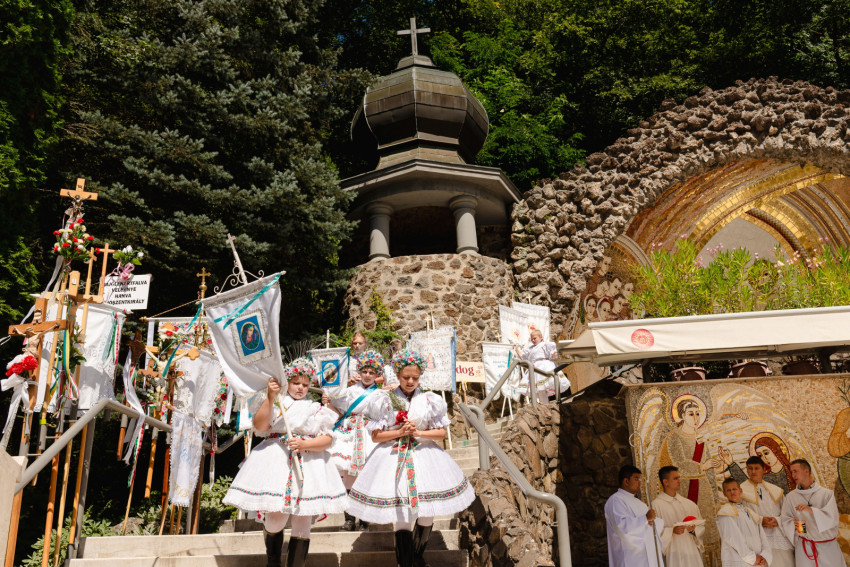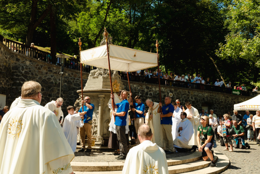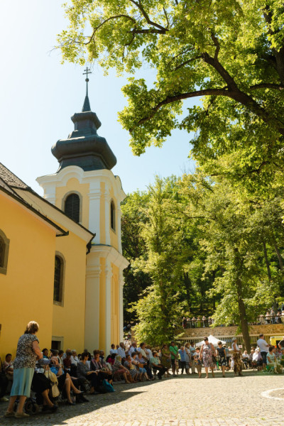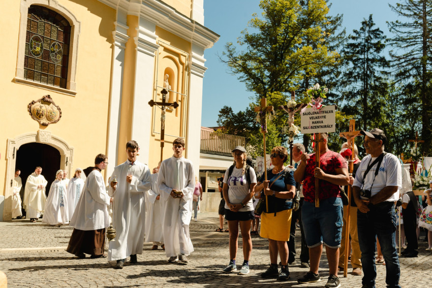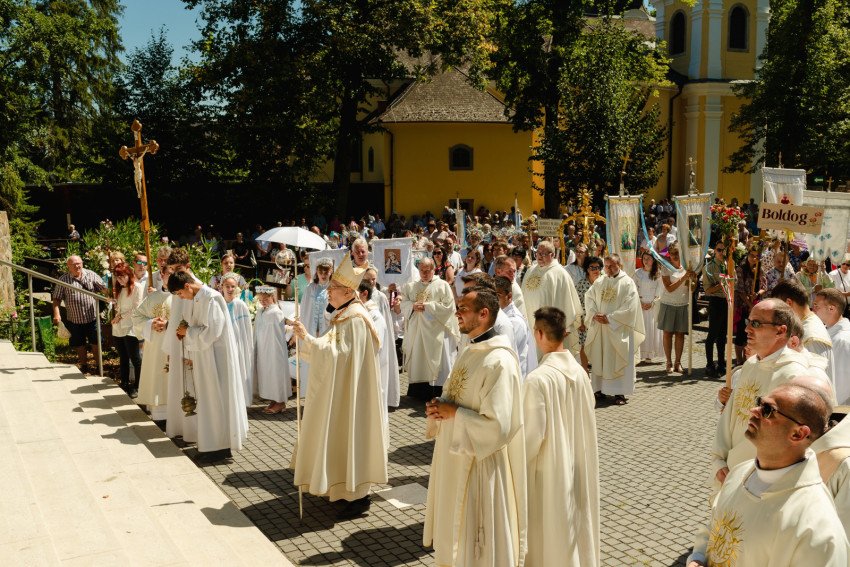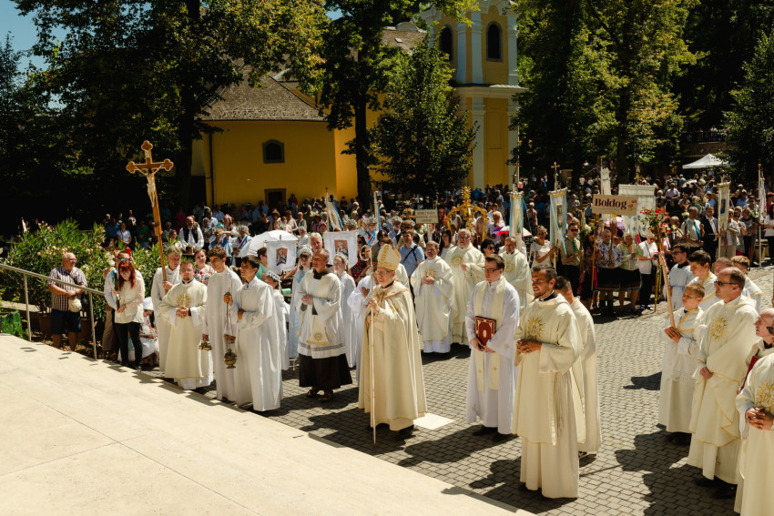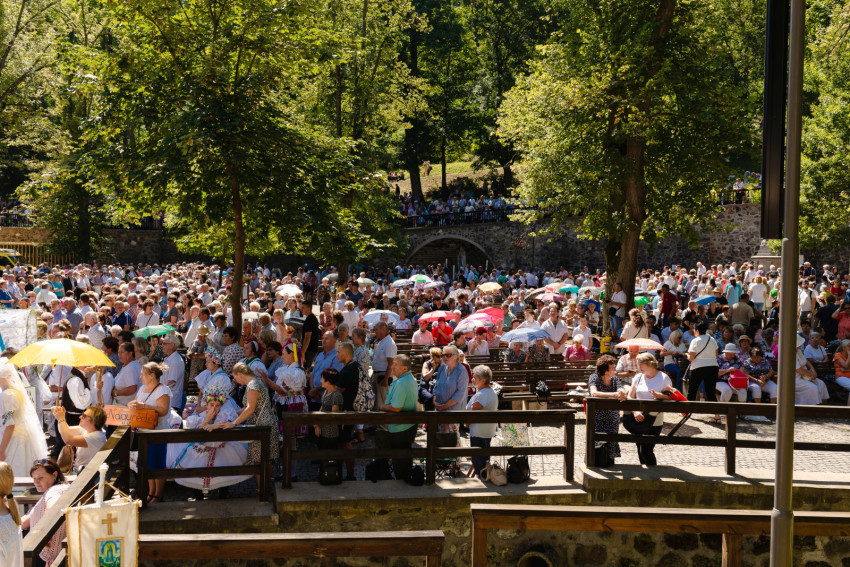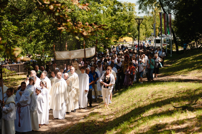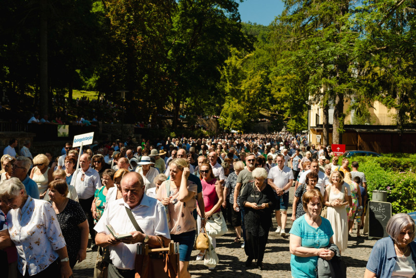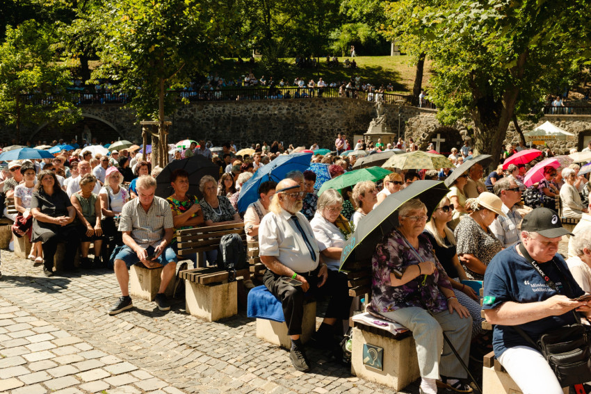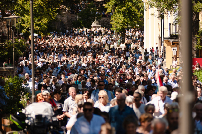 Visszatalált a zarándoksokaság a szentkúti kegyhelyre Nagyboldogasszony főünnepén. A koronavírus-járvány évei és az azt követő bizonytalanság után újra zsúfolásig megtelt az oltár előtti tér, körben a domboldal.
