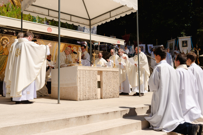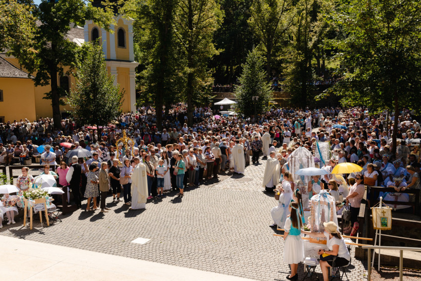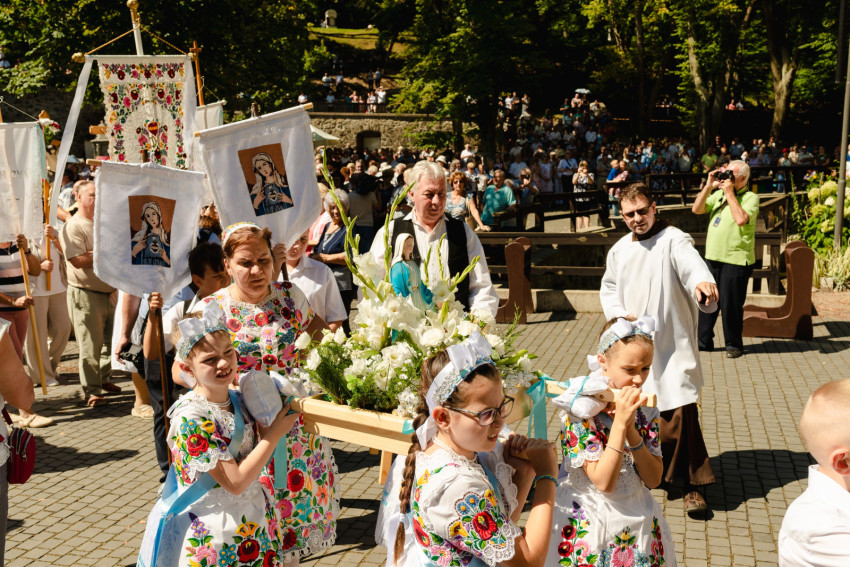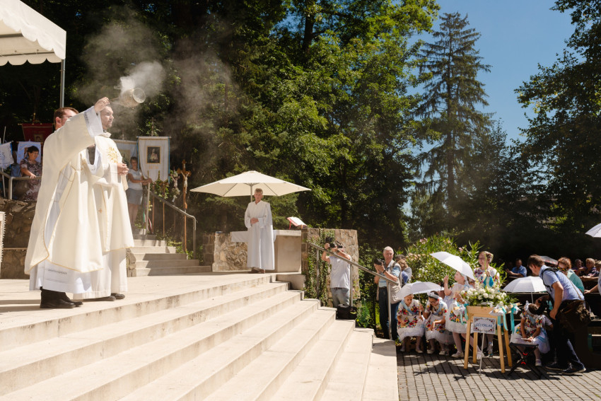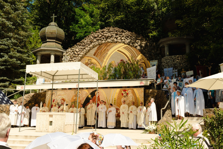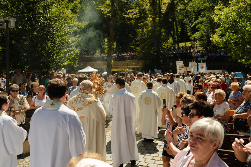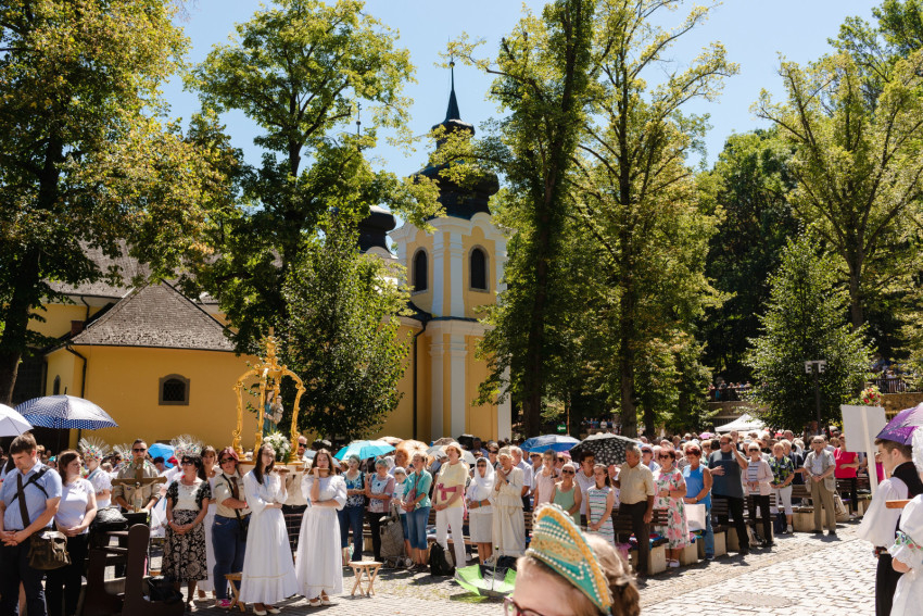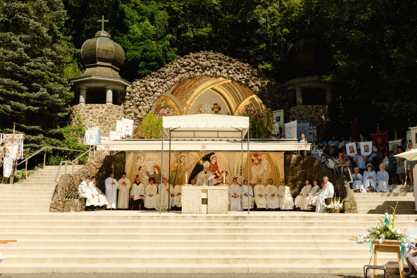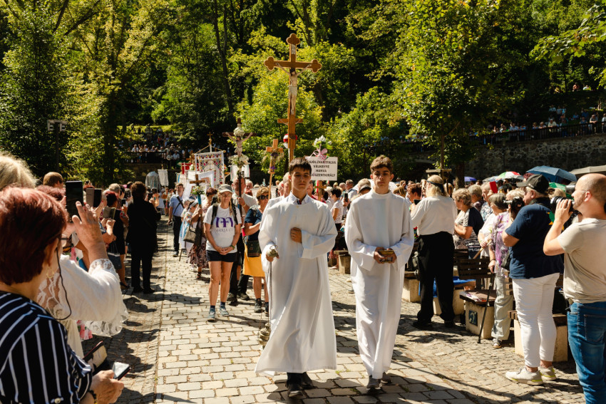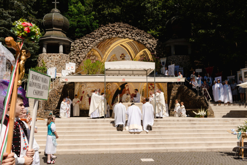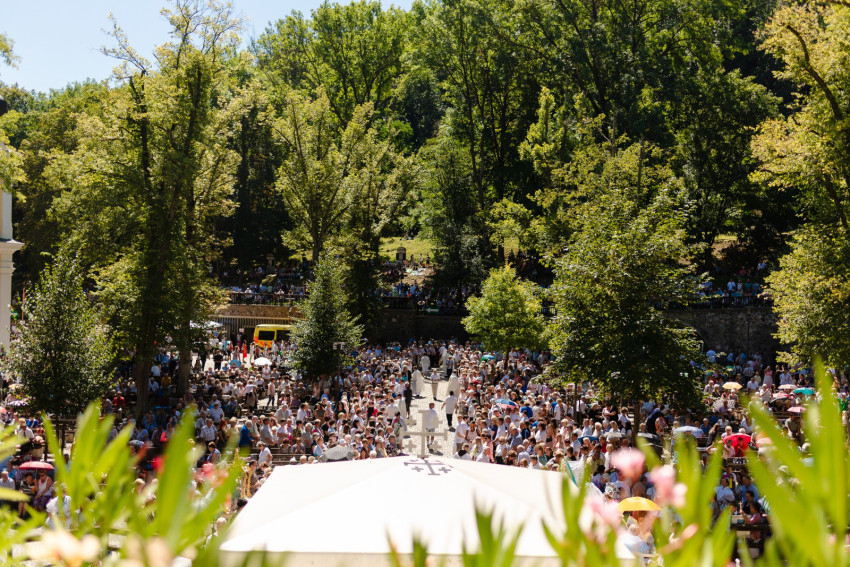 Visszatalált a zarándoksokaság a szentkúti kegyhelyre Nagyboldogasszony főünnepén. A koronavírus-járvány évei és az azt követő bizonytalanság után újra zsúfolásig megtelt az oltár előtti tér, körben a domboldal.