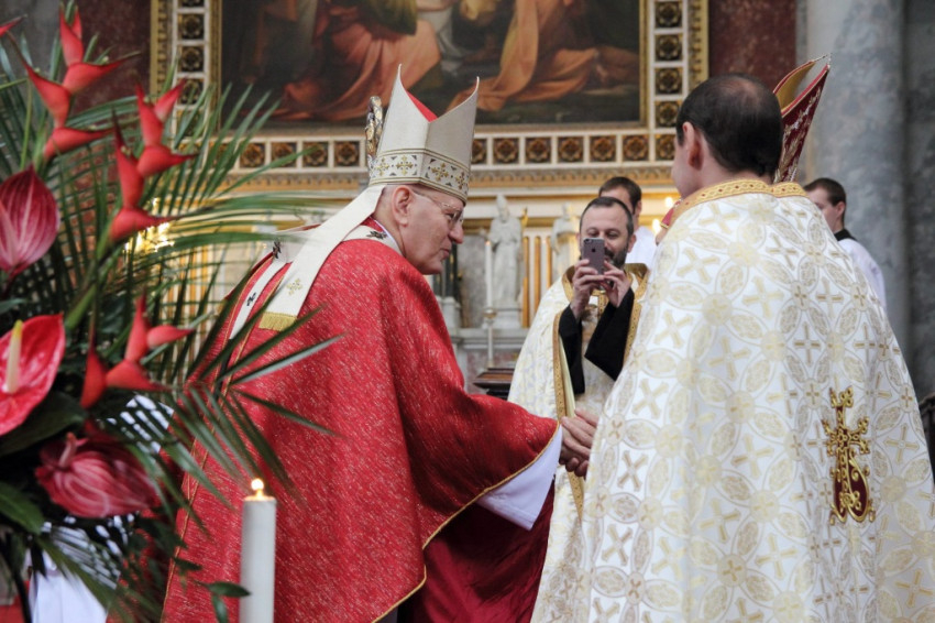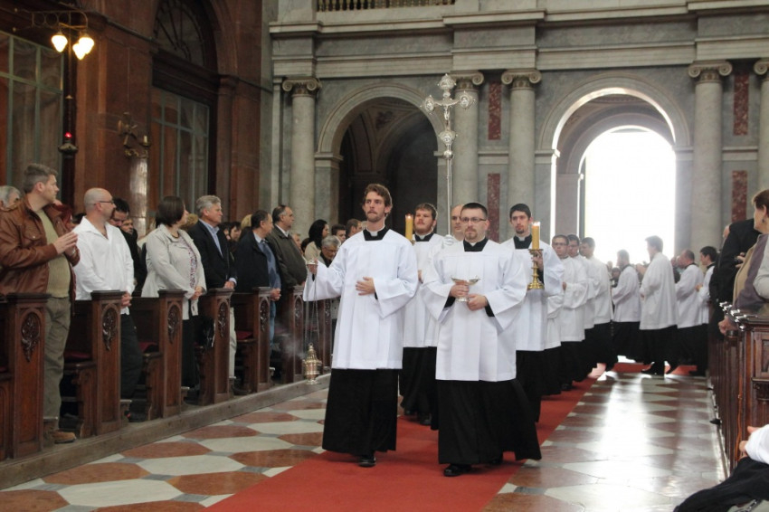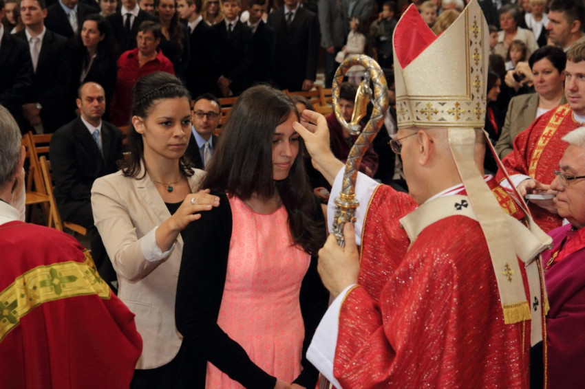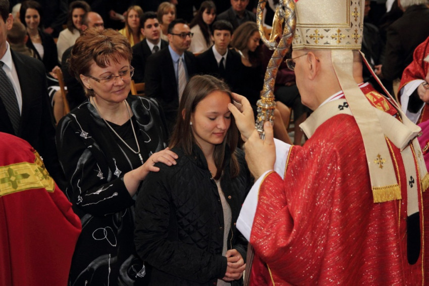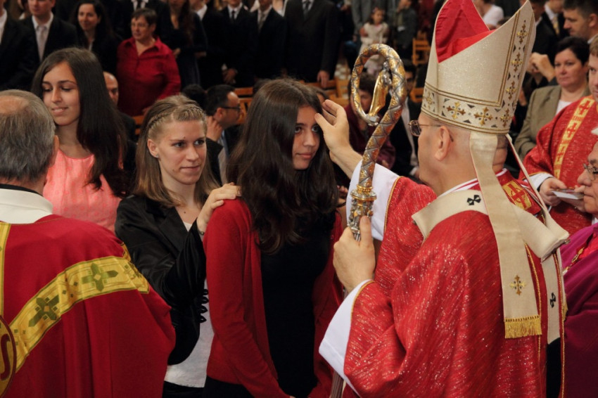 A szentbeszéd után Erdő Péter bíboros hatvannégy, az esztergomi plébániákhoz tartozó fiatalnak szolgáltatta ki a bérmálás szentségét.