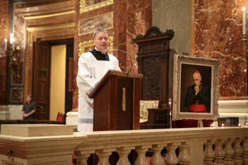 Mindszenty bíborosra emlékezve az üldözött keresztények képe tűnik fel előttünk. Az evangéliumban Krisztus megjövendöli, hogy a tanítványainak üldöztetésben lesz részük. De van ebben az evangéliumban egy titokzatos kijelentés is: „ha valamelyik városban üldöznek benneteket, meneküljetek a másikba, mert bizony mondom nektek, nem járjátok végig Izrael városait, amíg az emberfia el nem jön”. Az üldöztetésekkel terhes történelem során mindig vannak és lesznek olyan helyek, ahol az Egyház szabadon vagy legalább megtűrt állapotban élhet. Amikor hazánk menedéket és segítséget tud nyújtani üldözött keresztényeknek, gondoljunk arra is, hogy most talán éppen mi vagyunk az a másik város, ahol a hívők biztonságban lehetnek. Ezzel a felelősséggel és szeretettel foglaljuk imáinkba üldözött keresztény testvéreinket is.