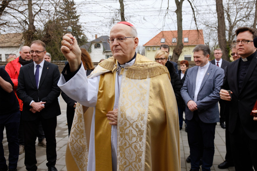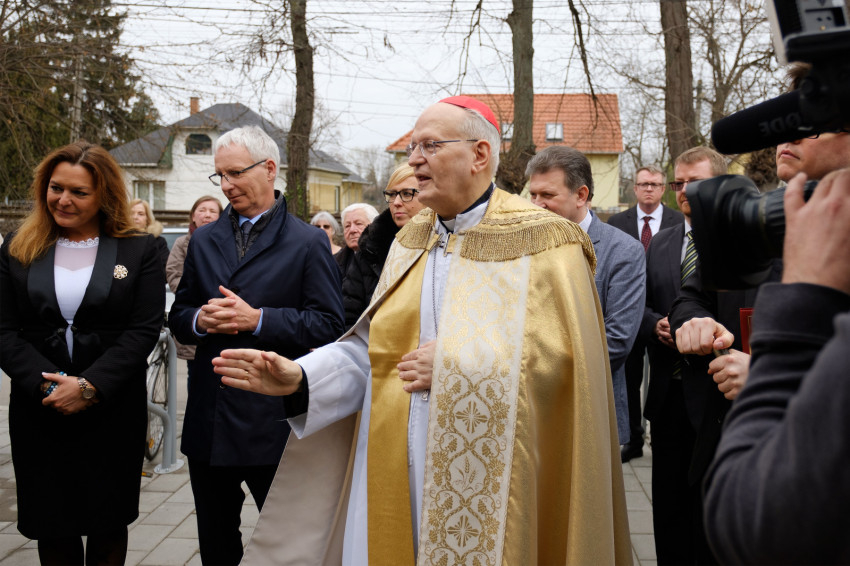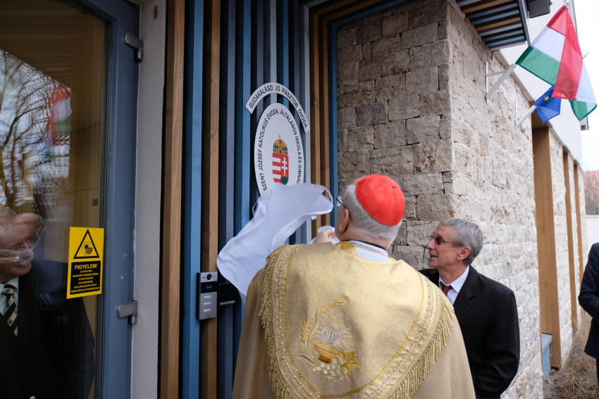 Az ünnepség zárásaként Erdő Péter bíboros megáldotta az épületet, majd Göbl Richárd polgármesterrel együtt leleplezték a főbejárat mellett elhelyezett névtáblát.