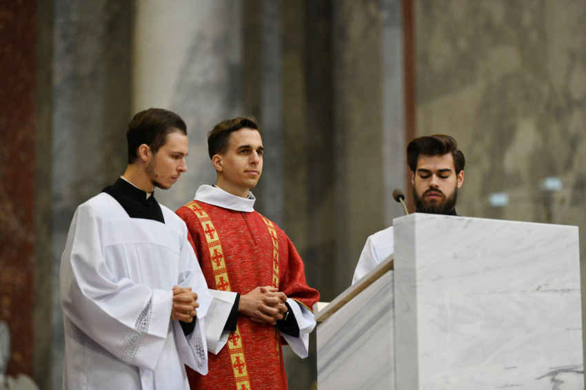 Az igeliturgia csúcspontjaként az esztergomi szeminárium növendékeinek szkólája elénekelte a passiót, Jézus Krisztus szenvedéstörténetét.