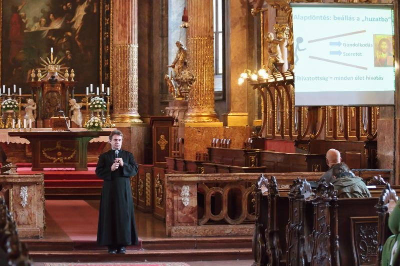 Az előadó kiemelte: minden élet hivatás, ha átimádkozzuk. Ezután a jó döntéshez szükséges értékrendszerről, a döntés feltételeiről és következményeiről, a szükséges tudatosságról, valamint az elköteleződés fontosságáról beszélt. Felhívta a figyelmet arra, hogy celebek helyett igazi példaképeket kell keresnünk közvetlen környezetünkben.