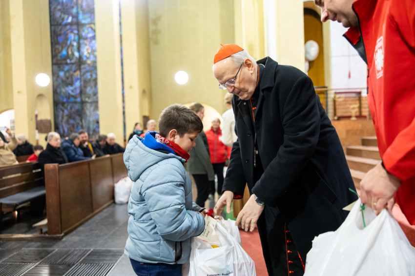 Ezután a név szerint szólították a gyerekeket a szentélyhez, ahol Erdő Péter bíborostól és Herczegh Anitától átvették a gazdagon megrakott ajándékcsomagokat. Erdő Péter bíboros áldásával fejeződött be a Katolikus Karitász főegyházmegyei ünnepsége.