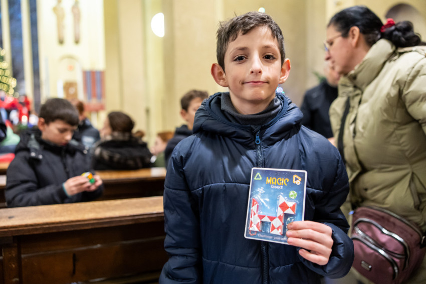 Mindenkit arra biztatott, mielőtt hazamegy, nézze meg a templom betlehemét. „Figyeljétek meg, milyen sokan vannak ott az Úr Jézus jászola körül: az egyszerű emberek, a pásztorok, a napkeleti bölcsek és még sokan mások. Mindannyian ott tolonganak, mert látni akarják Jézust, és a szívükbe akarják fogadni őt. Azt kívánom nektek, hogy ti is így fogadjátok szívetekbe az Úr Jézus Krisztust. Ne csupán az ajándékokat nézzétek – bár megértem, én is voltam gyermek –, hanem azt a szeretetet is, amely az ajándék mögött van. És