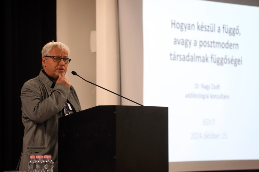 Nagy Zsolt addiktológiai konzultáns Hogyan készül a függő? című előadásának kiindulópontja az volt, hogy a függőség kialakulásában a szer, a személyiség és a környezet játszik szerepet, és a környezet esetében nemcsak a családi közeg, hanem az össztársadalmi környezet, vagyis a korszellem is meghatározó.
