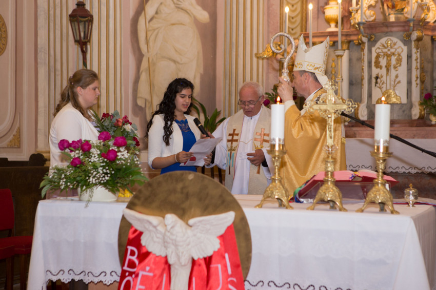 A szentbeszéd után a bérmálkozó fiatalok az egyházi közösség jelenlétében megújították keresztségi ígéreteiket, majd Szentlélek-hívó imádság következett. A főpásztor ezt követően szent krizmával kente meg a bérmálkozók homlokát.