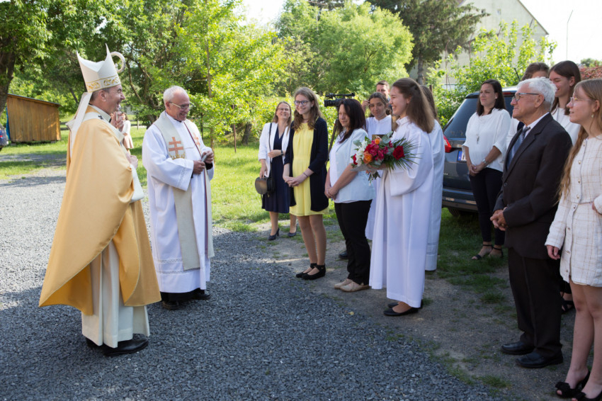 A bérmálkozókhoz fordulva a veszprémi érsek arra hívta fel a figyelmet, hogy Isten szeretetében, Isten közösségében, Istentől bátorítva és Istennek az útmutatása szerint kell élnünk. Nincs több, amit kérhetnénk. Nem kell mást ismerni, nem kell mást várni, mert a keresztségben beleoltódtunk ebbe az isteni életbe. Dönteni kell Isten mellett, ám sosem félelemből, sosem pusztán a parancsok alapján, a bűn elkerülése végett. A nagy méltóság miatt, amit kaptunk: Isten élete van bennünk. Ezért akarunk örömmel a jó mellett, az igazság mellett, a szép mellett, a szent mellett, a szolidaritás mellett, a béke mellett, az együvé tartozás mellett dönteni – emelte ki Udvardy György.