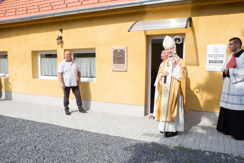 Az ünnepi eseményen Illés Sándor helyi plébános elmondta: Navracsics Tibor miniszter és Takács Péter helyi polgármester közbenjárásával a használaton kívüli melléképületekből multifunkcionális közösségi teret sikerült kialakítani, amely hittanórák, imacsoportok, rózsafüzér-társulatok számára biztosít méltó körülményeket, illetve a téli időszakban szentmisék megtartására is alkalmas.