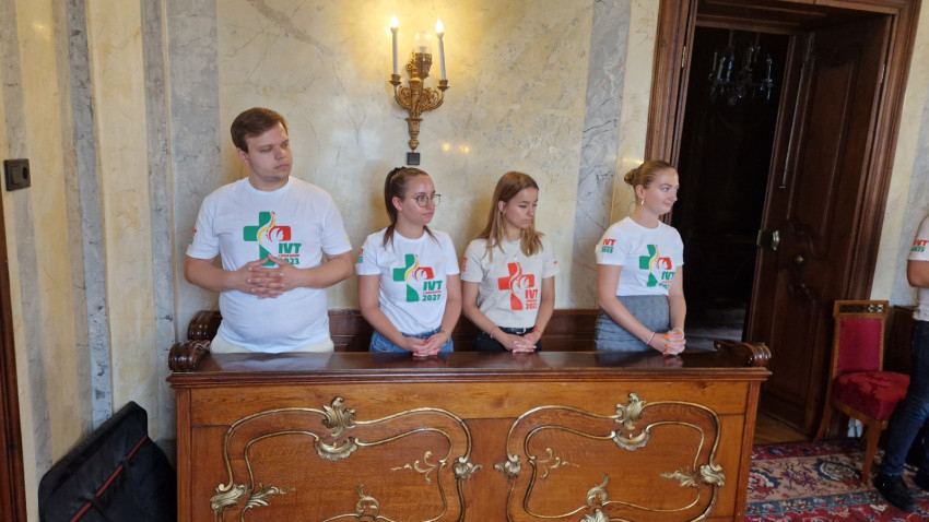 Az indulás előtti napon a csoport egy része még egy felkészítő programot vállalt, hiszen a Kalocsai Érseki Palotában Bábel Balázs érsek fogadta a fiatalokat.
