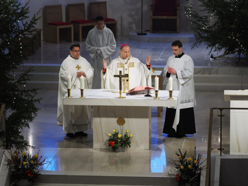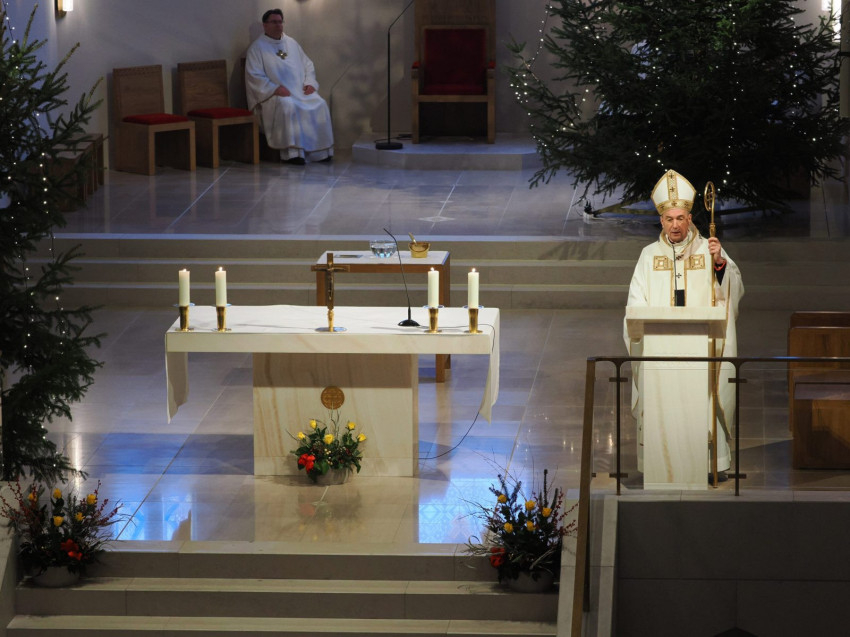 Elérkezett, aki uralkodik minden nép fölött; kinyilvánul Isten hatalmas dicsősége. Ezt ünnepeljük a Gyermekben – mondta a szentmise elején a főpásztor. – Uralkodik fölöttünk, és ezt az uralmat megosztja övéivel. Megosztja velünk, amikor megkeresztelkedtünk.