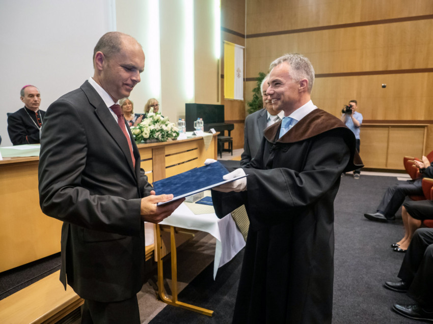 Navracsics Tibor kormánybiztos ünnepi beszédében arról szólt, hogy diplomásnak lenni felelősség, minden tekintetben. Rámutatott: Veszprémben a kereszténység előbb volt otthon, mint a magyarság, ezért kereszténynek lenni Veszprémben nem választott életforma, hanem a veszprémiség egyik lényegét adja.