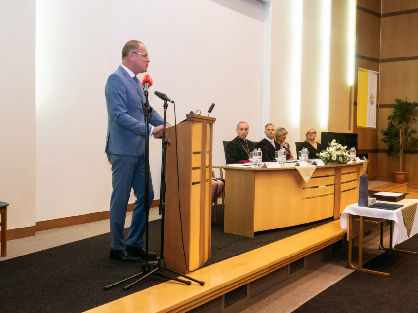 Hegedűs Barbara Szilvia alpolgármester hangsúlyozta: Veszprém büszke a Veszprémi Érseki Hittudományi Főiskolára. Az itt oktatók a kereszténység ősi bölcsességének modern mesterei. A rendszerváltás után egy olyan intézményt hívtak életre, amely méltó évszázados hagyományaihoz, tudományos, keresztény gyökereihez, Veszprém meghatározó szellemi központjává vált.