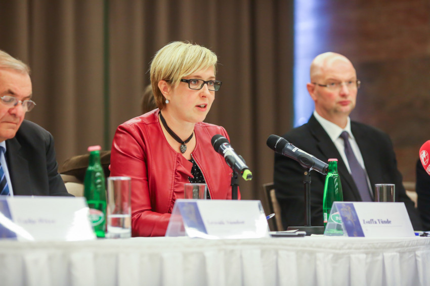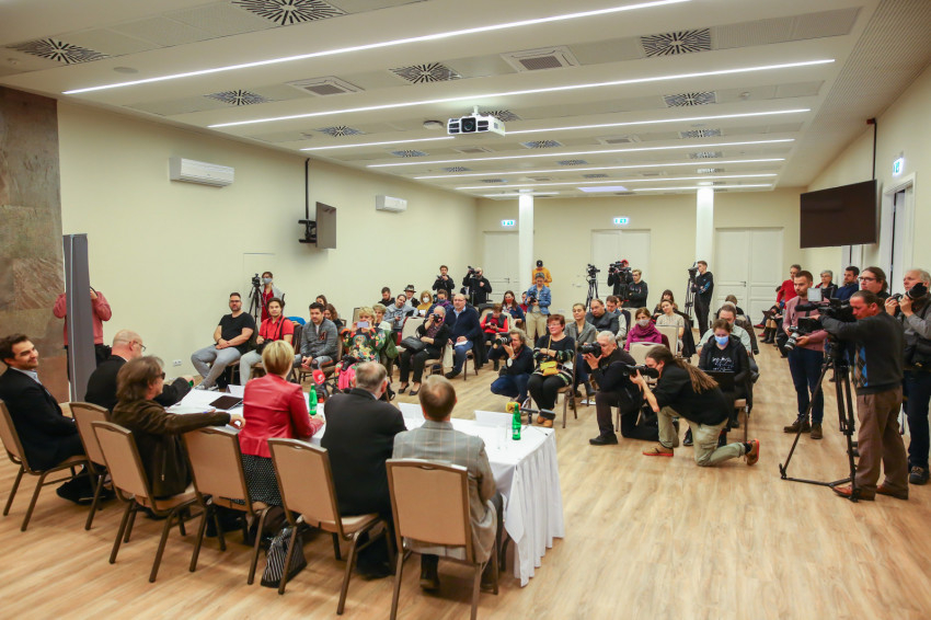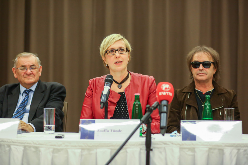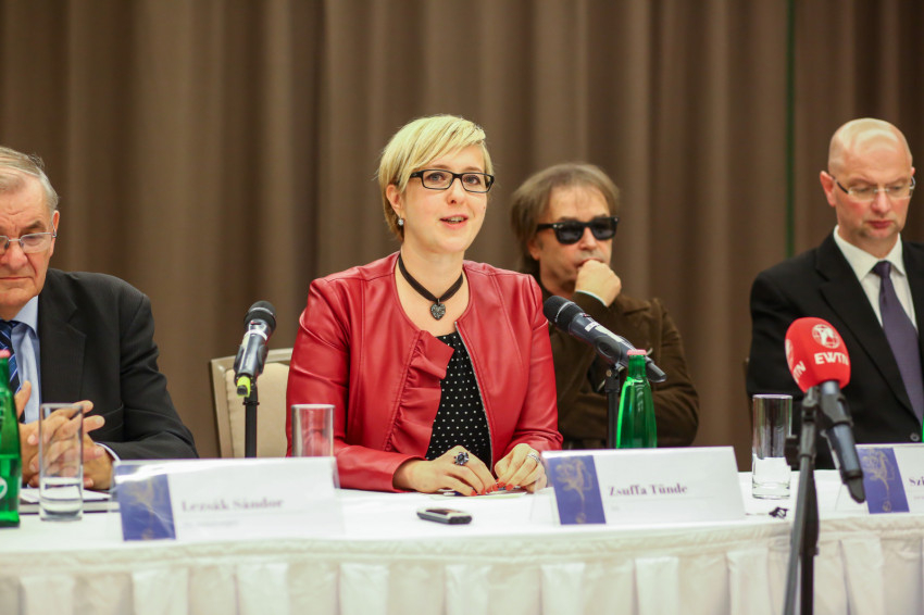 Zsuffa Tünde mellett Szikora Róbert zeneszerző, Lezsák Sándor dalszövegíró, Cseke Péter rendező, valamint a formálódó előadás producere, Pataki András szólalt fel a D50 Rendezvényközpontban tartott sajtótájékoztatón.