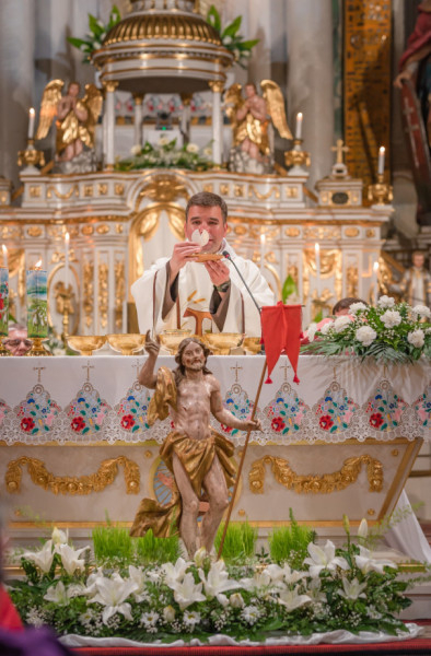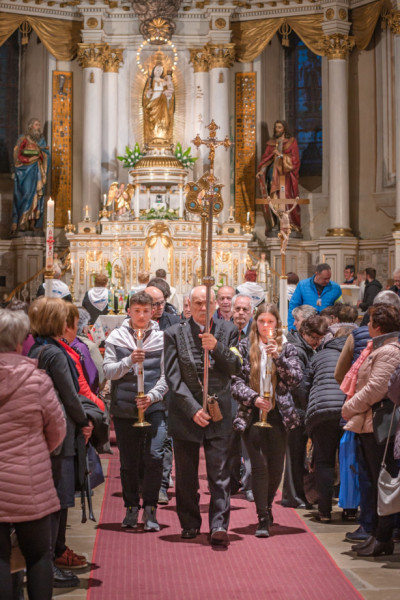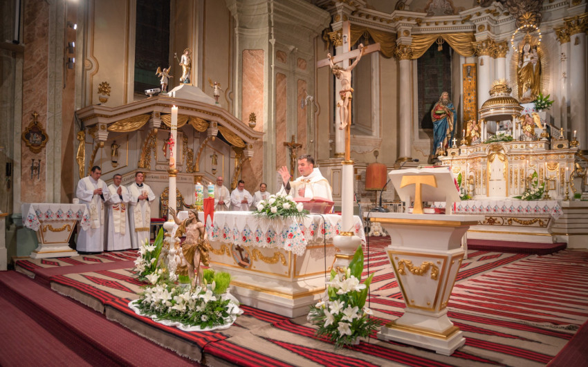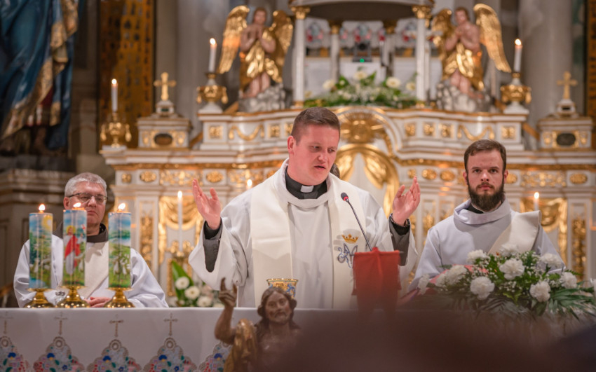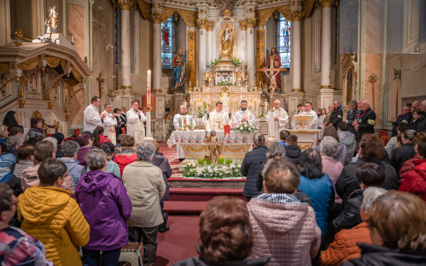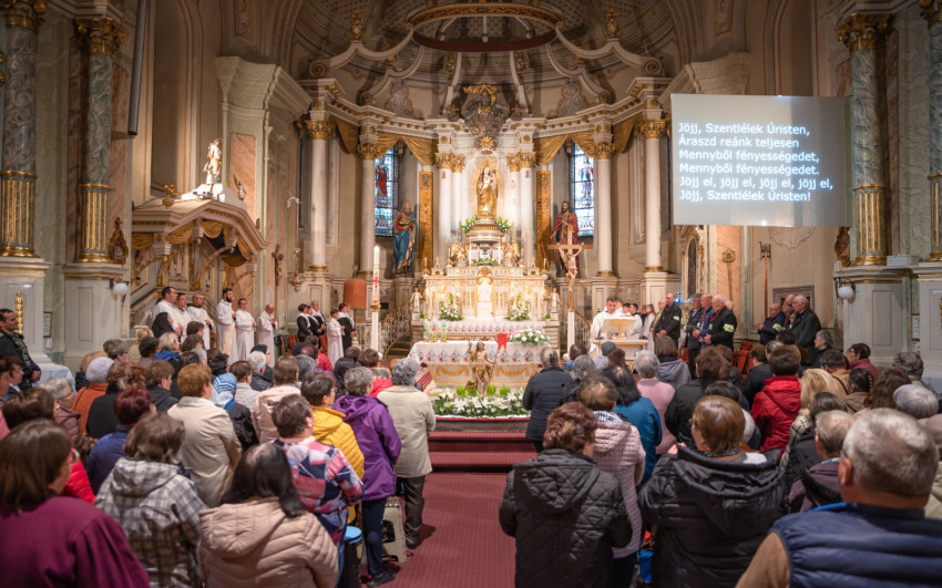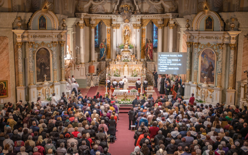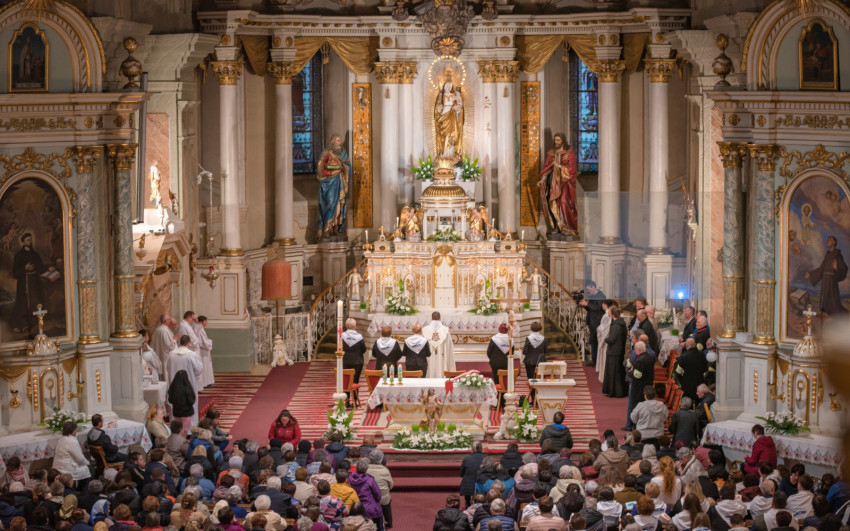 A 18 órakor kezdődő szentmisét Guia Hugó ferences szerzetes mutatta be. Prédikációjában – az isteni irgalmasság vasárnapjának előestéjén – arra biztatott, hogy