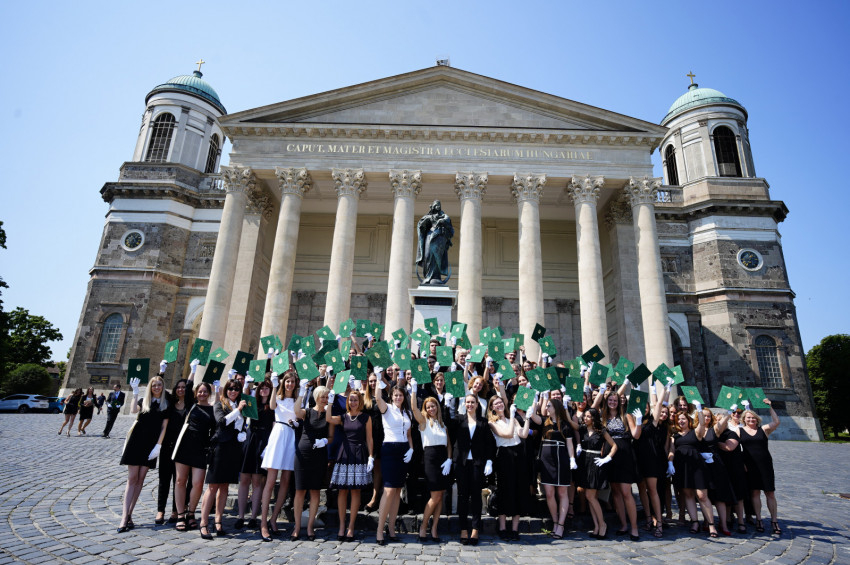 Az átadóünnepség után minden frissdiplomás csoportfotóhoz állt be a bazilika előterében a Nagyboldogasszony-szoborhoz, ahol már a hozzátartozók is köszönthették őket.
