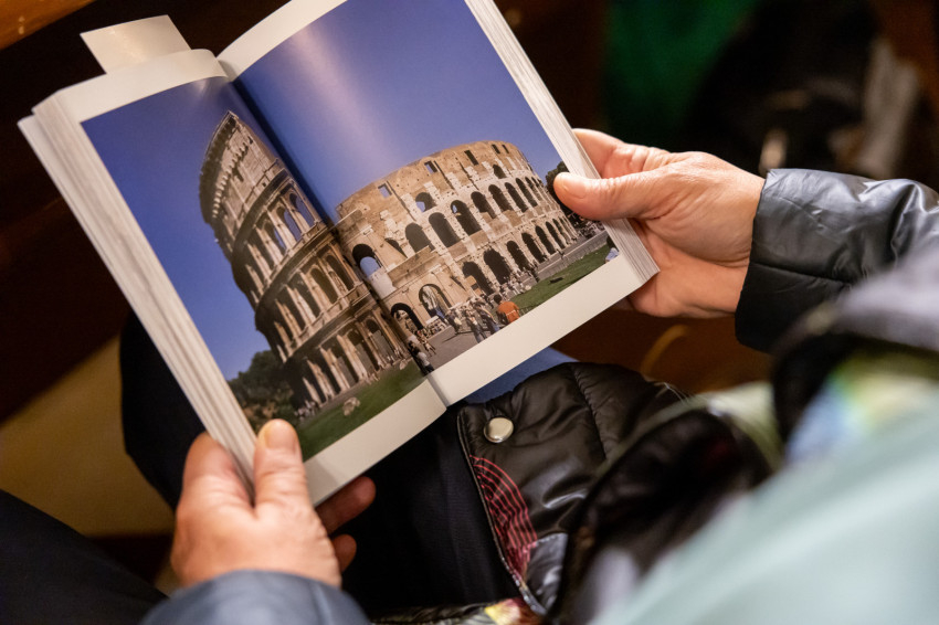 Így (nem csak) a 2025-ös szentévben minden Rómába zarándokló méltó útitársa. Erre utal a könyv borítójának egyedisége is, hiszen nem a megszokott, például a Szent Péter-bazilikát ábrázoló kép látható rajta, hanem az egyik legősibb római bazilika, a Szent Kelemen mozaikjának központi része.