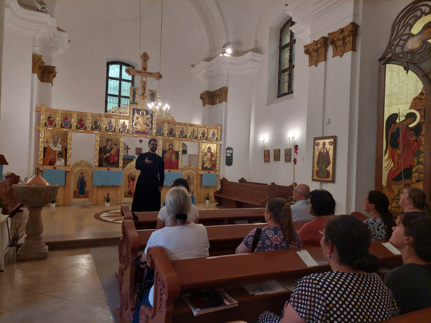 A programot az esztergomi görögkatolikus templomban folytattuk, ahol Káplár Márton parókus várt bennünket a családjával. A vecsernye után rövid kitérőt tettünk Párkányban. Az estét közösségi találkozással zártuk, amit Sütőné Görgényi Mónika moderált.