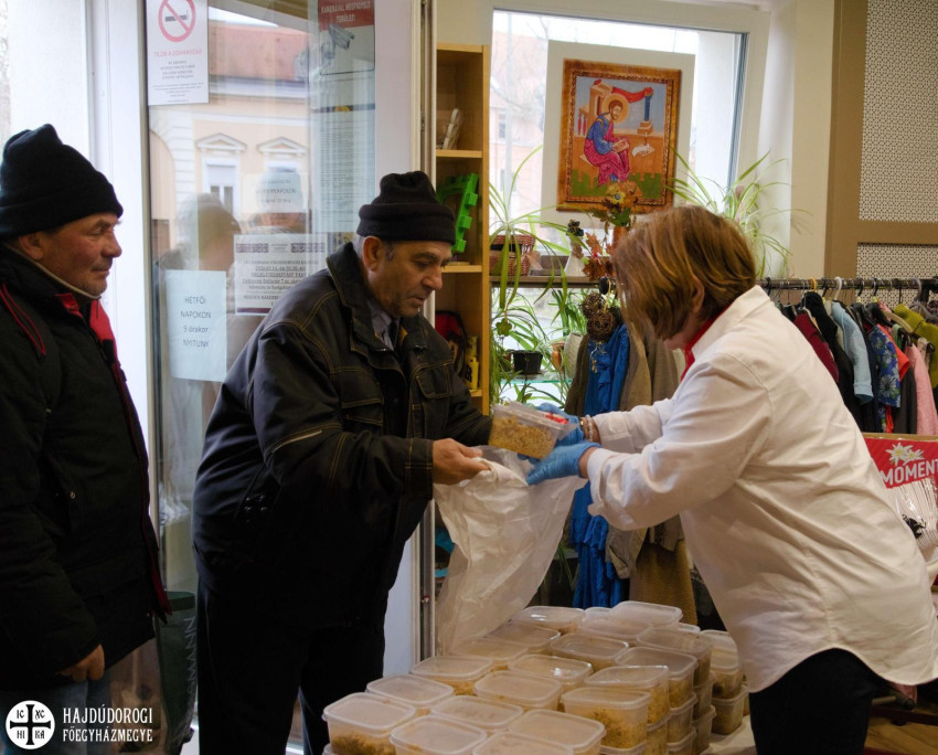 Aki eljött, egy bőséges adag tarhonyás húst, a karitász egyik munkatársának felajánlásából pedig egy ostyaszeletet kapott. Az étellel együtt a betegek imádságát is magával vihette mindenki.