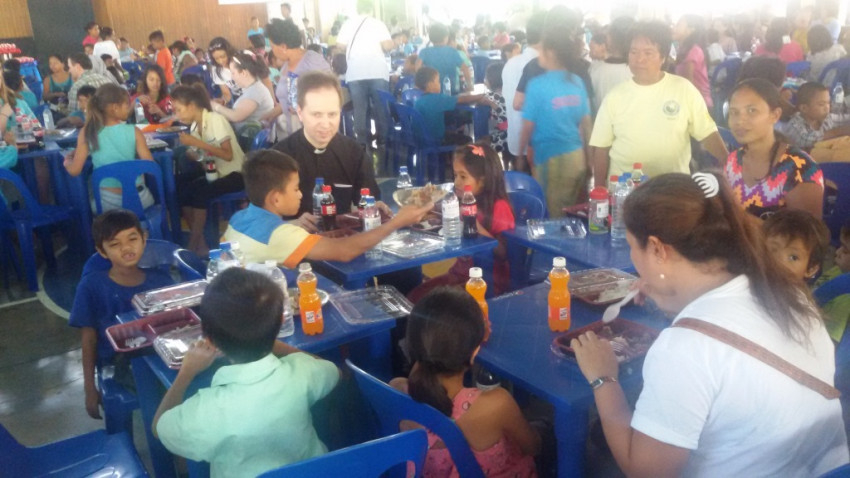 A vendéglátást a kanadai katolikusokon túl helyi vállalkozók is támogatták, így valódi lakomává lett az ebéd. Elkészítették Cebu specialitását, az erős, mégis édeskés fűszerezésű disznósültet is. Az ebéd megkoronázása a színes cukormázzal bevont sütemény volt – mindegyik más-más színben pompázott, tetején a két ország, Fülöp-szigetek és Kanada zászlójával. A miseoltár előtt oldalt egy helyre előkészített, emeletekbe rendezett színes édességek annyira szép látványt nyújtottak, hogy a miséző főpap megjegyezte: ilyen gyönyörű mellékoltárt még egy templomban sem látott.
