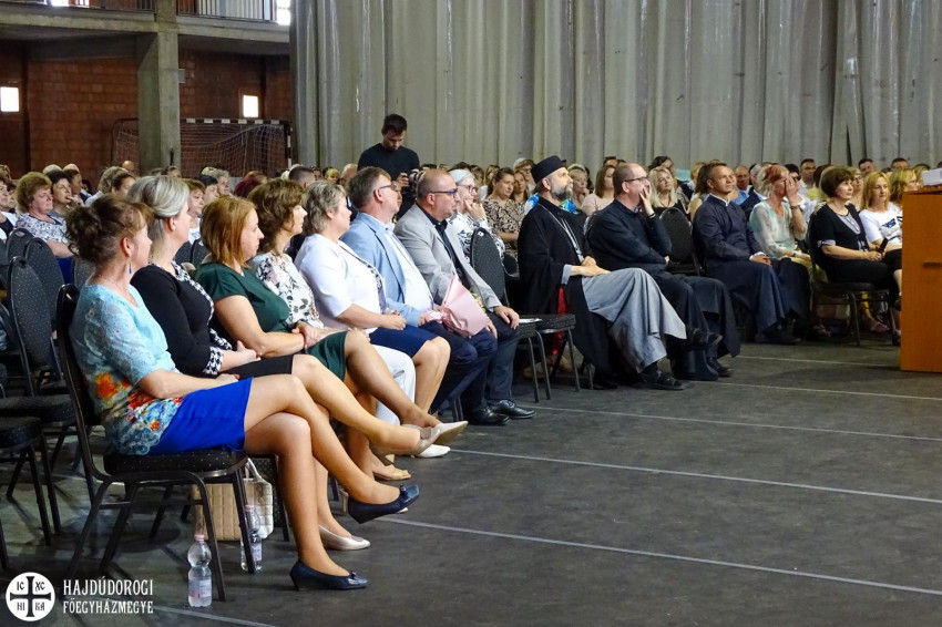 Az Isten tervébe beleférnek ezek a kudarcok, nehézségek, amelyeket mintegy jelzésképpen kapunk, hogy akkor valami még több, valami még nagyobb áldás következik. Így tekintsünk vissza kudarcainkra, fájdalmainkra. Az Istenfélő ember ilyenkor megerősödik a hitben, a jó pedagógus még felvértezettebben folytatja a munkáját. Hiszen az Istenfélő ember örömét és kudarcait is képes az Isten szemével látni – fogalmazott Kocsis Fülöp. A tanítás végén felidézte a tanév jelmondatát: „Úgy kell ragyognotok, mint a csillagoknak a mindenségben” (vö. Fil 2,15).