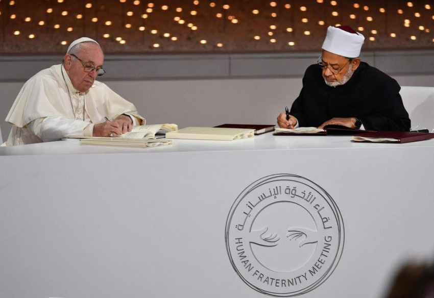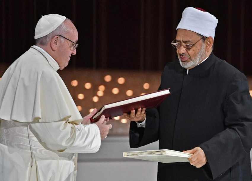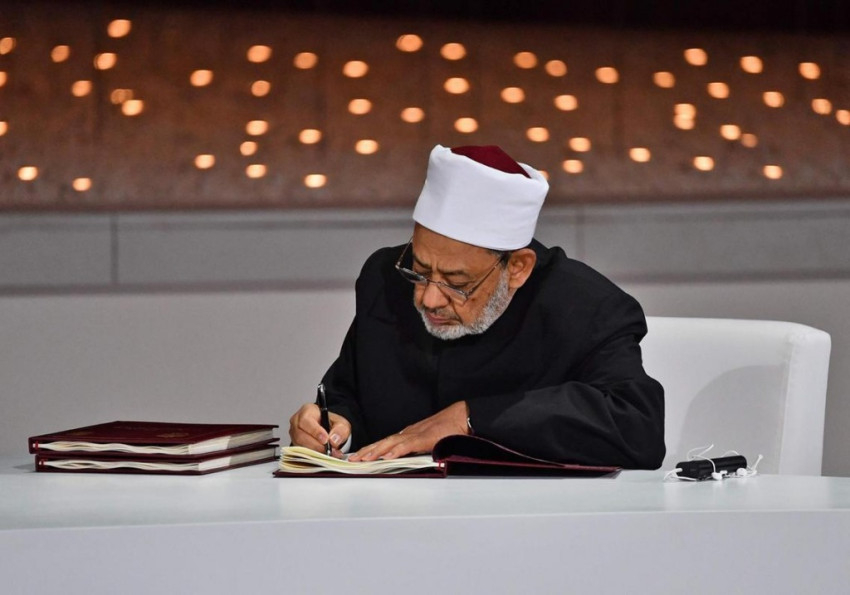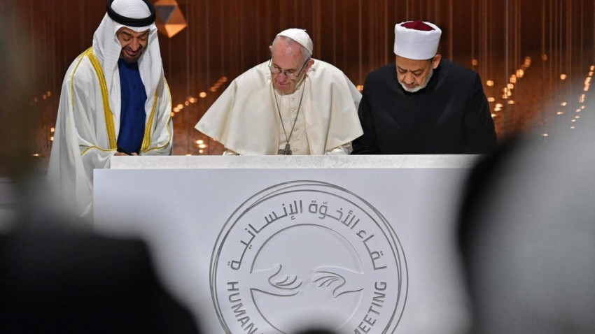 Ezekből a testvéries és őszinte eszmecserékből, melyekben részünk volt, és az összes ember fényes jövőjét illetően reményteljes találkozóból született meg ennek az „Emberi testvériségről szóló dokumentum”-nak az ötlete. Ez egy őszintén és komolyan átgondolt dokumentum, jó és tisztességes akaratok közös nyilatkozata, mely arra hívja mindazokat, akik szívükben hordozzák az Istenben és az emberi testvériségben való hitet, hogy egyesüljenek és dolgozzanak együtt, hogy ez útmutatásul szolgáljon az új nemzedékeknek a kölcsönös tisztelet kultúrája felé, annak a nagy isteni kegyelemnek a megértésében, amely az összes embert testvérré teszi.