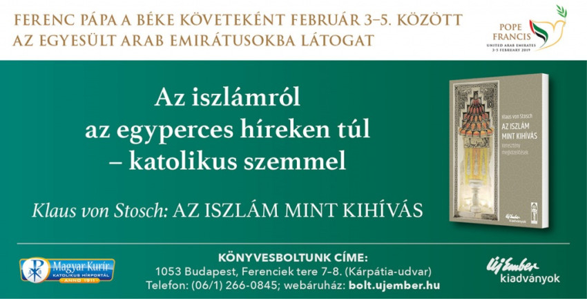 Klaus von Stosch Az iszlám mint kihívás – Keresztény megközelítések című kiadványunk megvásárolható az Új Ember könyvesboltban (Budapest, V. kerület, Ferenciek tere 7–8.; nyitvatartás: hétfő, kedd, csütörtök, péntek 9–17 óráig; szerdán 10–18 óráig) vagy megrendelhető az Új Ember online könyváruházban.