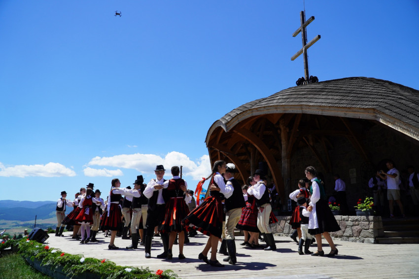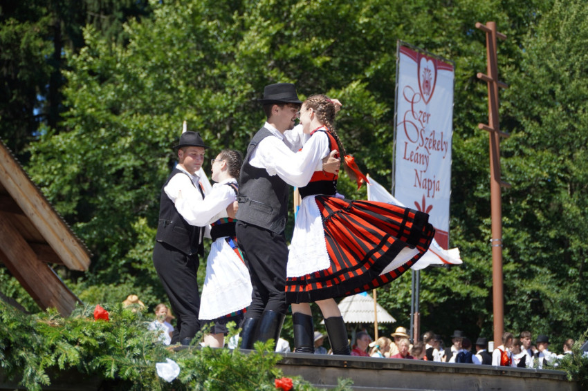 Majd következett a tánc: harminc településről érkeztek tánccsoportok, hogy egymást váltsák a színpadon. A szervező Hargita Nemzeti Székely Népi Együttes is fellépett, az ifjúsági csoportjukkal közös produkcióban is bemutatkozva.