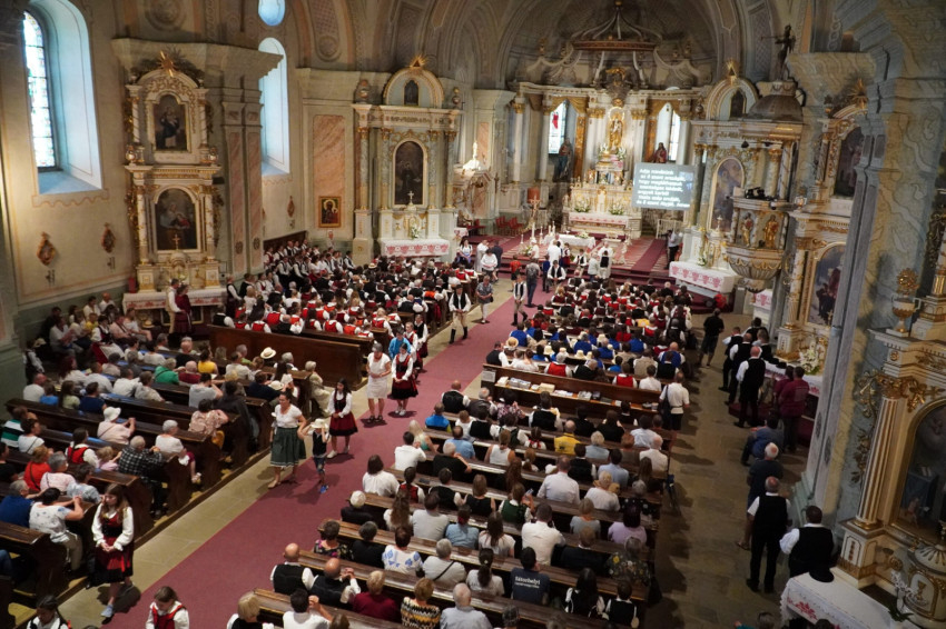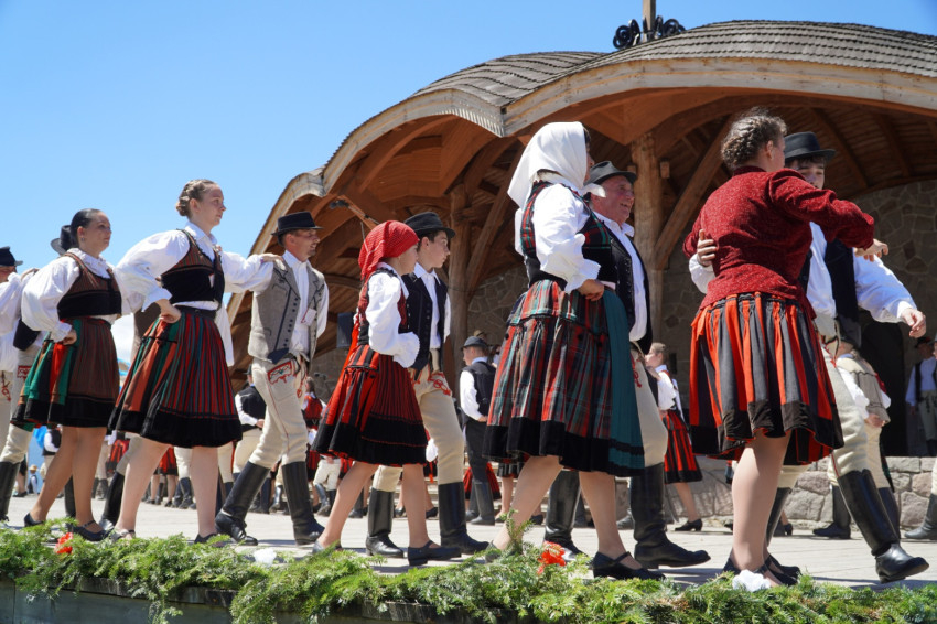 Ezúttal sem maradt el a népviseletbe öltözött résztvevők közös tánca, és elkészült a hagyományos csoportkép is.