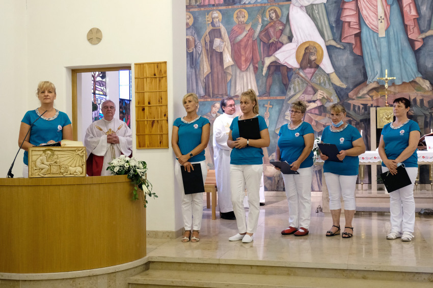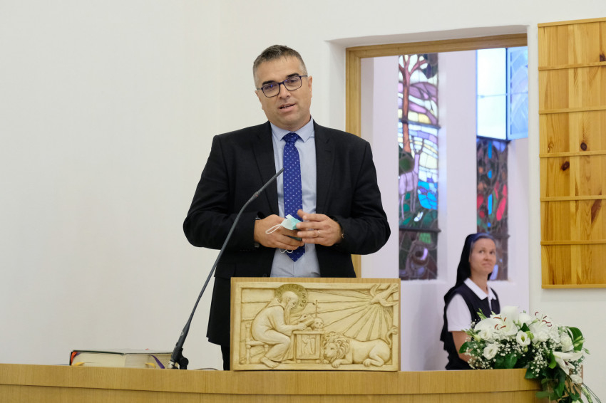 A Katolikus Szeretetszolgálat hetvenéves történetére utalva rámutatott: az intézményt történelmi nehézség szülte, vérről és gyötrelemről szólt a kezdet. A szerzetesrendek feloszlatása után nem lehetett utcán hagyni az idős testvéreket. Mára azonban a szeretetszolgálat sokrétű intézménnyé vált, tele elkötelezett, kedves munkatárssal, akikből nemesség, öröm, szeretet sugárzik.