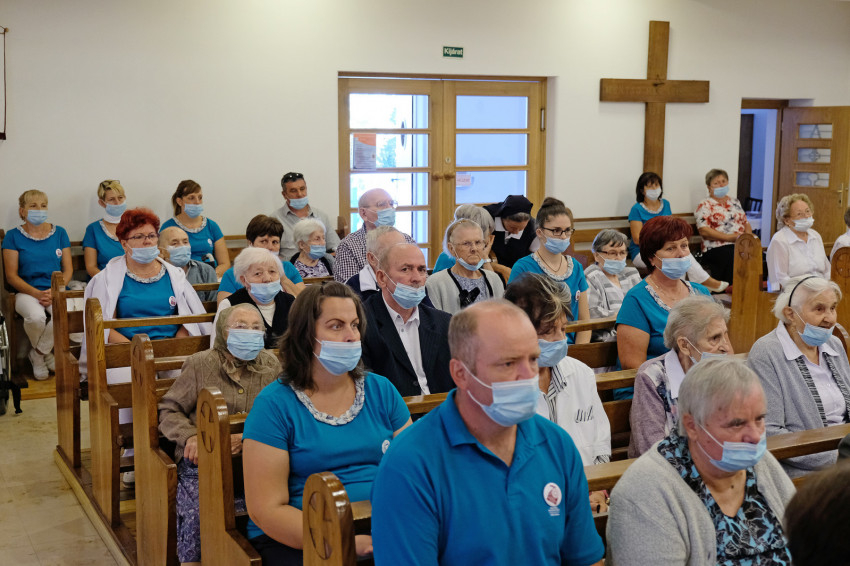 A szentmise elején Várszegi Asztrik emeritus pannonhalmi bencés főapát köszöntötte az ünnepre egybegyűlteket, köztük a templomhoz tartozó kolostorban (hajdan itt látták el az időseket) élő Szent Benedek Leányai szerzetesnővéreket, valamint a Katolikus Szeretetszolgálat központjának képviselőit; a Pax Otthon vezetőjét, Baranyi Évát; a munkatársakat és nem utolsó sorban az otthon lakóit, akik a járványhelyzet miatt fél év után most először lehettek jelen szentmisén szeretett templomukban.