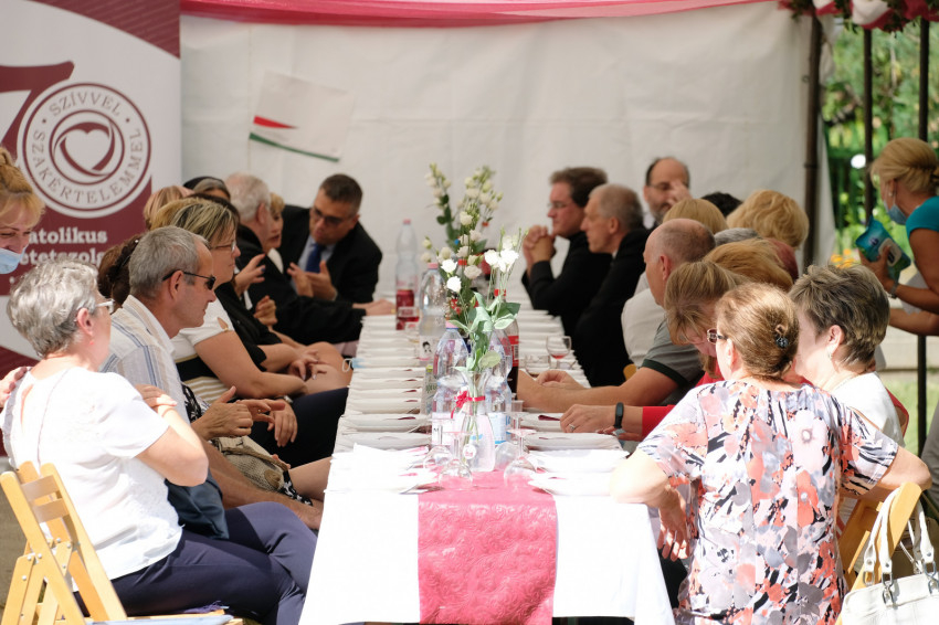 A szentmise után Kósa Andrásné Marika ünnepi szavalata csalt könnyeket a szemekbe, majd Kinde Kálmán, a Katolikus Szeretetszolgálat gazdasági főigazgatója és Vancsura István tiszaalpári polgármester mondott személyes hangú köszöntőt.