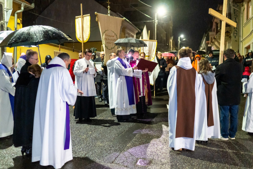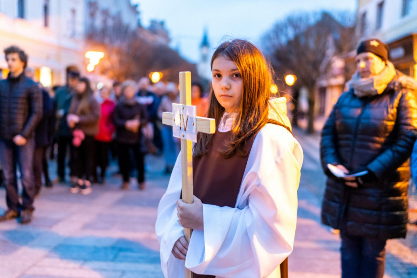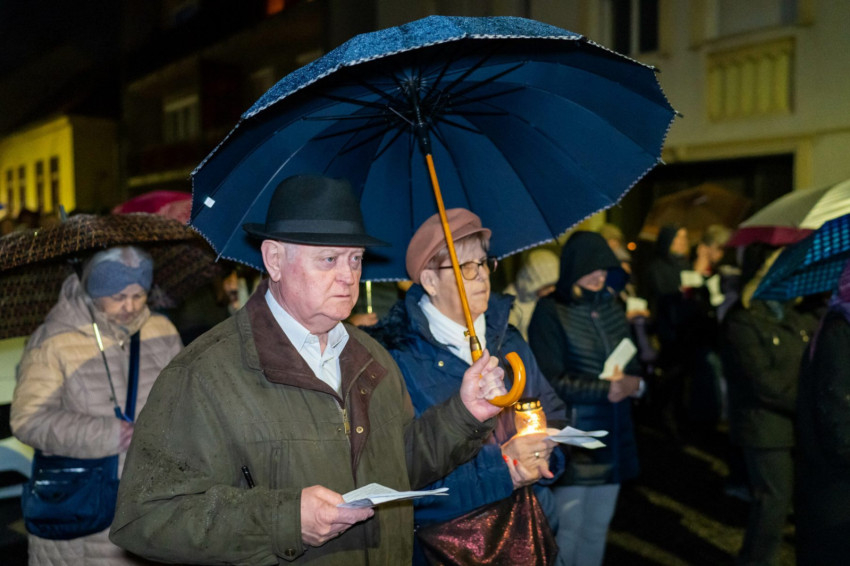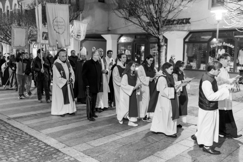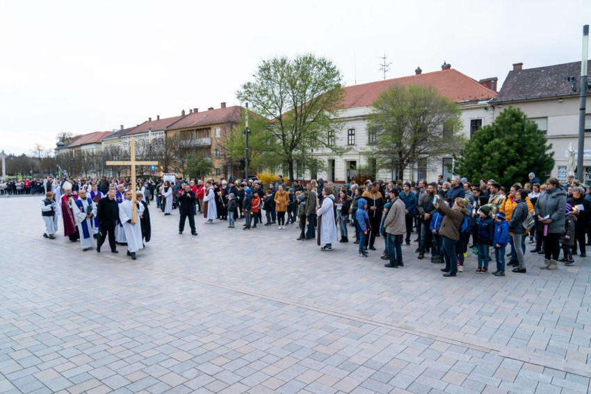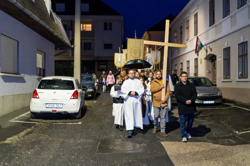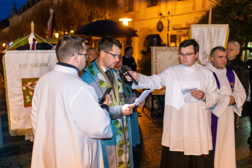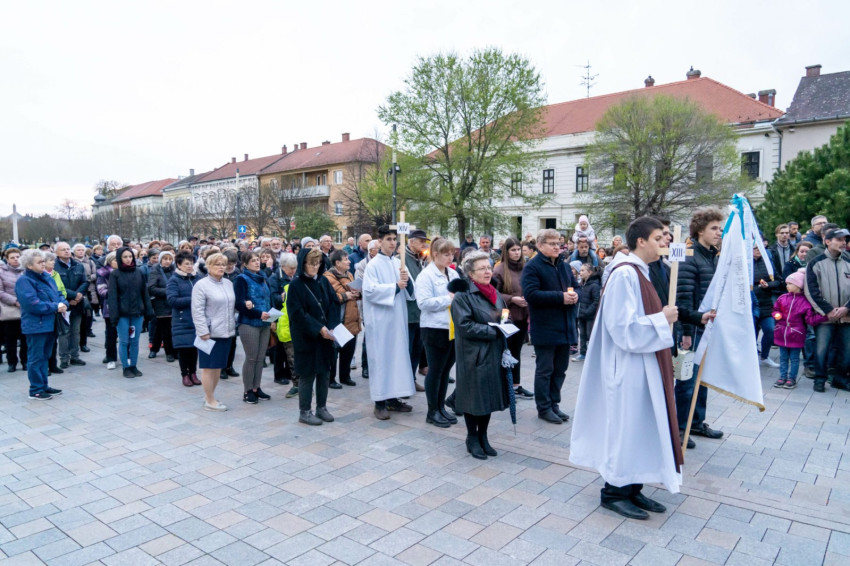 Az esti szentmise után a közel ezer jelen lévő hívő – köztük reformátusok és evangélikusok is – a veszprémi érsek vezetésével végigjárta a városi keresztút tizennégy stációját.