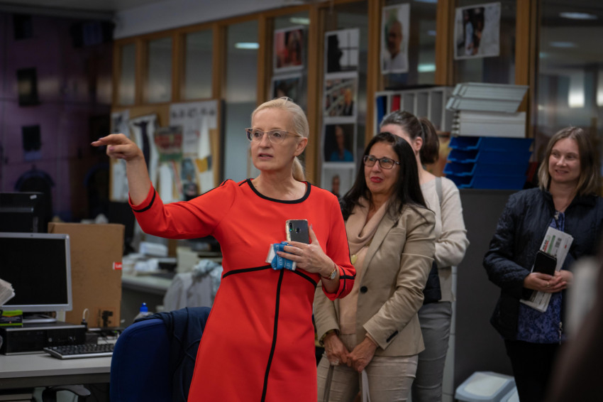 A szakmai és lelki jellegű találkozó október 8-án délután a Kisalföld szerkesztőségében tett látogatással vette kezdetét. Werner Krisztina főszerkesztő-helyettes mutatta be az egyik legrangosabb vidéki napilap történetét. Fénykorában az újság még a Népszabadság példányszámát is meghaladta százezres darabszámával. Az internet betörésével a Kisalföld nyomtatott példányszáma visszaszorult, de ma is nagyon jelentős az olvasótábora mind a nyomtatott orgánumnak, mind a kisalfold.hu-nak.