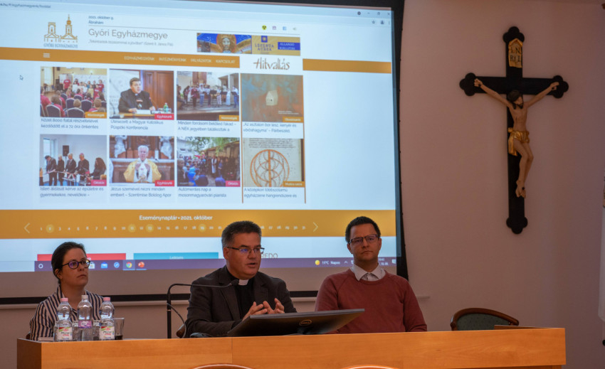 A szombati napon a szentmise és Veres András előadása után a Győri Egyházmegye sajtóirodája mutatkozott be Kálmán Imre irodaigazgató vezetésével. A résztvevők a belső és a külső kommunikáció nehézségei mellett megismerhették az egyházmegyei honlap felépítését és működését. A híreken felül az egyes plébániák elérhetőségei is megtalálhatók a weboldalon, amely az egyházi dokumentumok közreadását is lehetővé teszi. Mindez egy regisztrációt igénylő felületen érhető el a plébániák számára. Ennek köszönhetően lehetőség nyílik például a plébániák leltárának digitalizálására is.