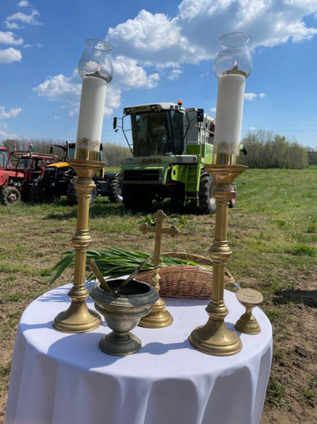 A felsorakozó mezőgazdasági munkagépek megáldását Rádi Dávid segédlelkésszel együtt végezte a parókus. Majd a gépek és kísérőik méltóságteljes – közel másfél kilométer hosszú – felvonulása következett, amit a rendőrség biztosított.