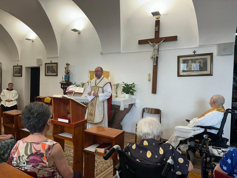 József atya 2023 óta a győri Szent Angéla Otthon lakója. Gyenge egészségi állapota miatt aranymiséjén egykori diákja, Sárai-Szabó Kelemen bencés perjel vezette a liturgiát. A bensőséges hangulatban ünnepelt szentmisén az otthon lakói mellett jelen voltak József atya barátai, egykori hittanosai, hívei, valamint Bakonyszombathely község polgármestere és az egyházközségi képviselő-testület elnöke.