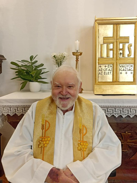 A szentmise zárásaként József atya aranymisés áldásban részesítette a megjelenteket, ezt követően az ünneplés az otthon ebédlőjében folytatódott, ahol Géringer Istvánné polgármester asszony mondott köszönetet a nyugalmazott lelkiatyának, s adta át a község ajándékát.