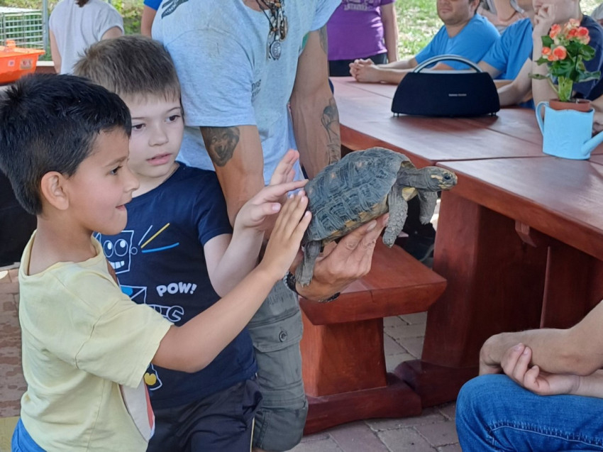 A héhalmi Frenklin Park jóvoltából a délelőtt folyamán még egy hüllőbemutatóra is sor került, melynek keretében több különleges teknősfélével, varánusszal és szakállas agámával is lehetett ismerkedni. Bár egy-két résztvevő tartózkodott az elsőre ijesztőnek tűnő állatoktól, a legtöbben kíváncsian figyelték a bemutatót, sőt meg is simogatták az egzotikus élőlényeket.