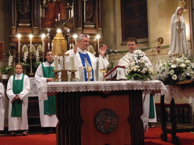 A szentmise bevezetőjében Inzsöl Richárd emlékeztetett rá, a Szűzanya köszöntésére gyűltek össze: „A Szűzanyának az a legkedvesebb, ha Jézushoz viheti el hálaadásunkat.” A szentbeszéd kezdetén Inzsöl Richárd az édesanyákhoz fordult, és arra kérte őket, elevenítsék fel emlékezetükben azt a pillanatot, amikor gyermekük először köszöntötte őket. Bizonyára nagyon kedves emlék ez a pillanat minden édesanyának. Így van ez a Szűzanyával kapcsolatban is: számára a gyermeki szív ártatlanságával végzett imádság és hálaadás a legkedvesebb. Örömmel fogadja ezt a hálát, s viszi el Jézushoz. „Sokszor úgy érezzük, hogy nem tudjuk megoldani feladatainkat, erőnk fogytán, de ne feledjük, hogy a Szűzanya közbenjárására Jézussal együtt mindent meg tudunk tenni”– emelte ki Inzsöl atya.