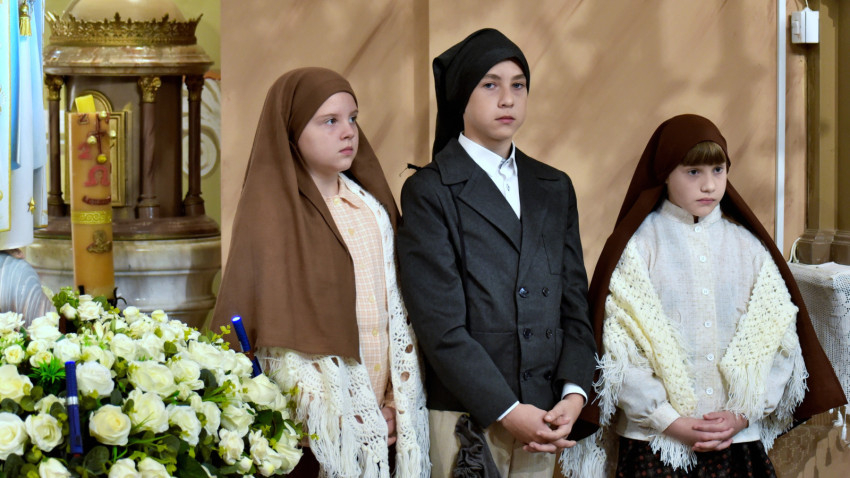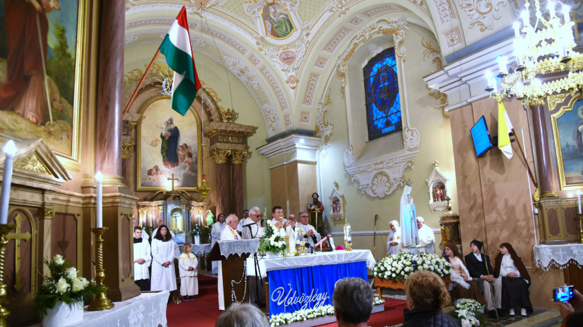 A vasárnapi ünnepség rózsafüzér imádsággal kezdődött, amelyet Sóti János atya vezetett.