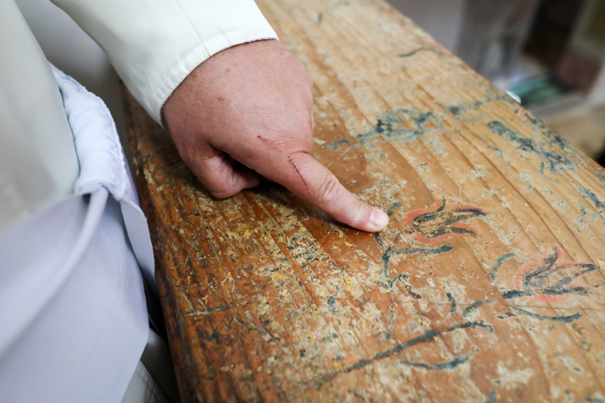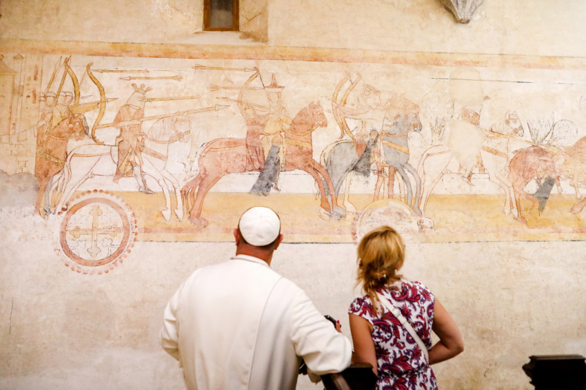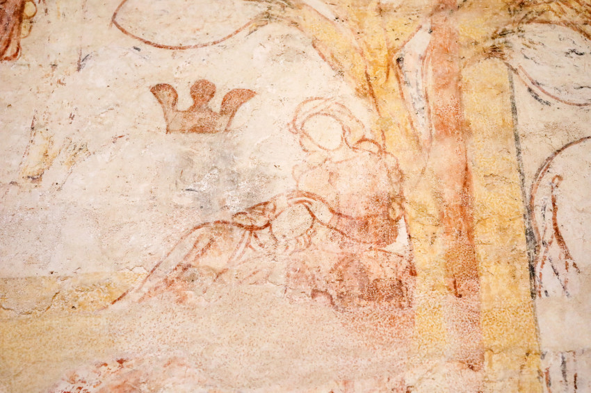 A Szent László-legendát ábrázoló középkori falfestményt Láng József fedezte fel a mellékhajó oltárának restaurálásakor a déli falon. A lovagkirály legendájának mind a hat jelenete látható a falon egymás mellett, szalagszerűen. Az elsőn a fehér lovon ülő Szent László nyugati viseletben ered nyomába a keletiesen öltözött, lányrabló kun vitéznek. Az utolsó képen pedig a király a könnyeit hullató megmentett lány ölébe hajtja a fejét.