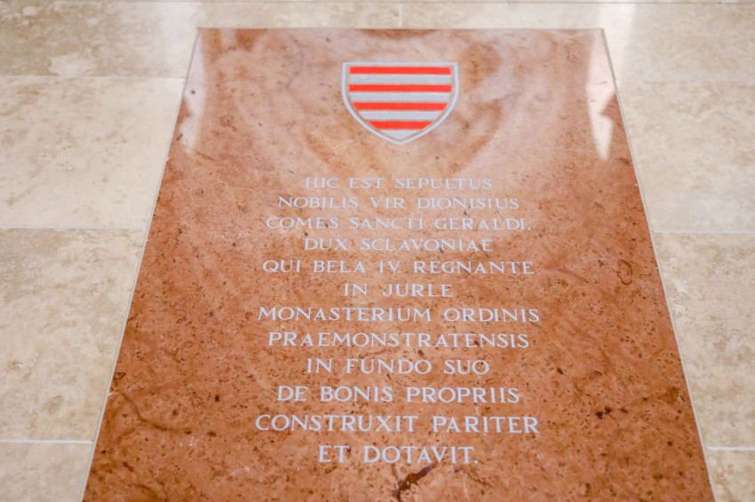 Több szenzációs felfedezést is köszönhetünk a feltárásnak: a szentély előtti főhajórészben előkerült az apátság alapítójának, Dénes szlavón bánnak a sírja. „A premontreieknek itt is volt konventjük a váradhegyfoki és a csornai alapítás után tíz évvel, még a tatárjárás előtt. Oklevelekből tudtuk, hogy itt van eltemetve Dénes bán, aki sokat segédkezett IV. Bélának.” Orha Zoltán és a Zala megyei régészcsapat ásta ki és azonosította be a sírhelyet a szentély előtti főhelyen, amit most egy kőtábla jelez a padlón.