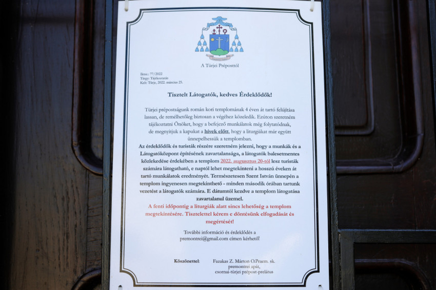 A sokáig méltatlanul elhanyagolt műemlék megújult, helyreállt a rend. A türjeiek az ásatások idején is bizonyították, mennyire magukénak érzik a templomukat. A közösséget próbára tette a négyéves felújítás, de most végre újra szentmisét ünnepelhetnek a templomban. „Köszönettel tartozunk az adófizetőknek, a kormánynak, a kivitelezőknek, mindenkinek, aki bármit is hozzátett a felújításhoz, mert óriási értékmentés történt. Reméljük, a rengeteg munka elnyeri méltó jutalmát, sokan megszeretik a templomot, és büszkék lesznek rá. Fel kellene helyezni Türjét Magyarország turisztikai térképére” – mondta látogatásunk végén búcsúzóul Fazakas Márton csornai apát.