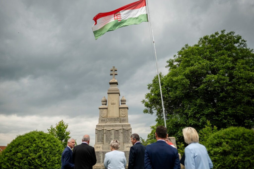 A jelenlévők a kegyelet koszorúit helyezték el a helybéli Bartalis kőfaragó család által készített talapzat elé.