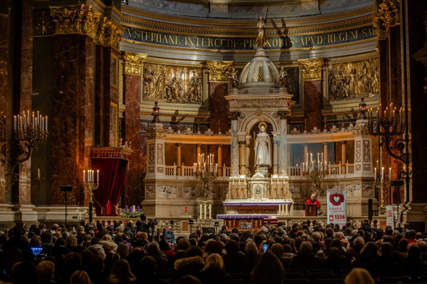A Szent István-bazilika impozáns szakrális tere adott otthont a Karitász Emberbőrbe bújt Isten címmel megrendezett zenés-verses jótékonysági programjának december 18-án.