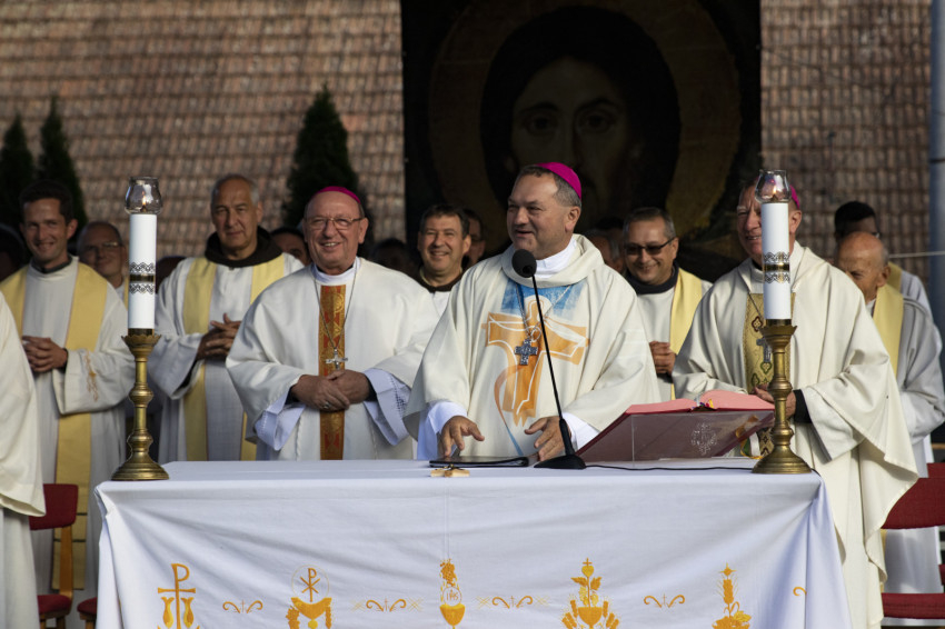 Szentbeszédének elején a főpásztor azt javasolta, utalva az angyali üdvözlet Szent Lukács könyvéből elhangzott evangéliumi szakaszára: üljünk mindannyian Mária lábaihoz. Majd arra kérte két másik jelenlévő püspöktársát, hogy röviden ők is szóljanak a résztvevőkhöz.