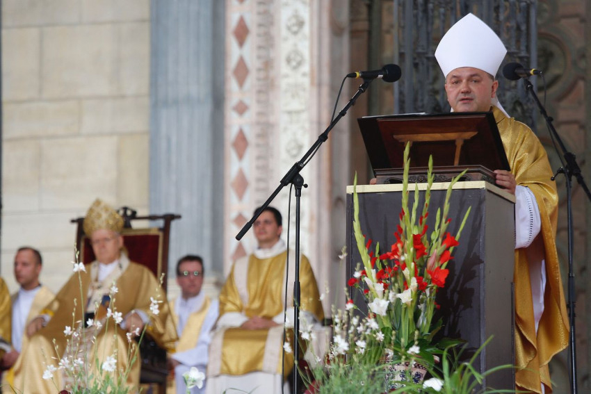 Felföldi László pécsi megyéspüspök szentbeszédét Váci Mihály Ezt! Itt! Most! című versének részletével zárta: