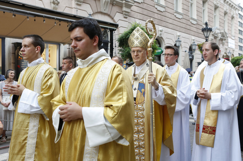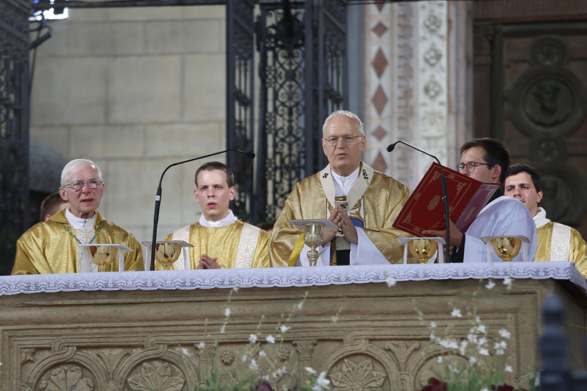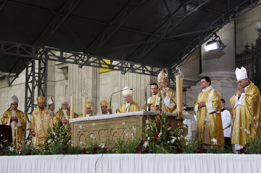 Az ünnepi szentmisén koncelebrált Michael A. Blume apostoli nuncius, Bábel Balázs kalocsa-kecskeméti érsek, Udvardy György veszprémi érsek, a Magyar Katolikus Püspöki Konferencia (MKPK) tagjai, valamint Haľko József pozsonyi segédpüspök.